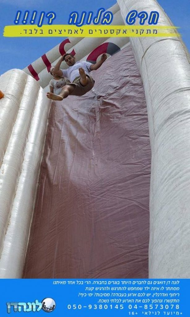 כדורסל ענק * מגלשות מים * גלשן חשמלי * סומו עם זירה* אתגרון ענק* מסלולי וויפאאוט 5 מתקנים שונים * ועוד……